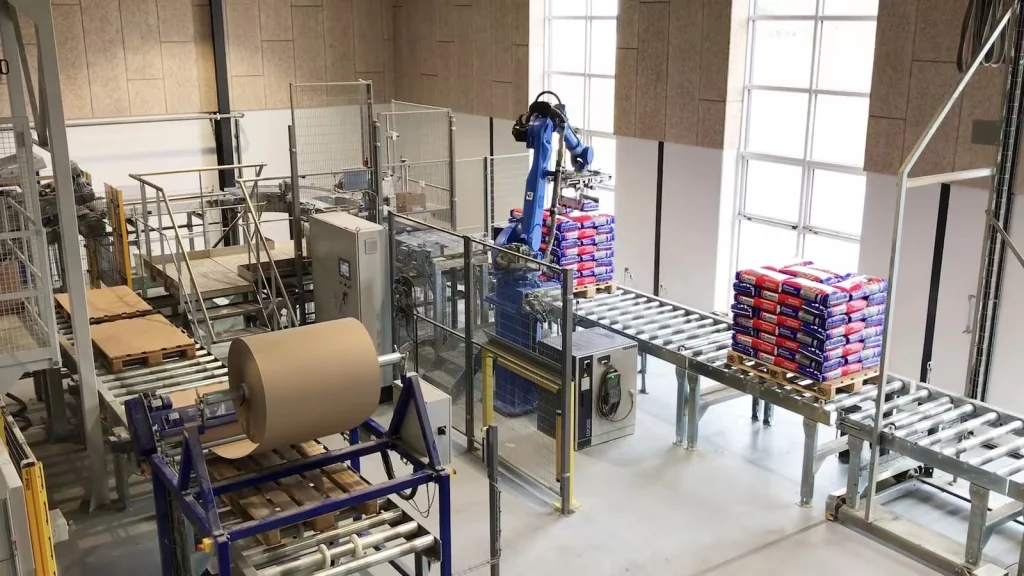 id.liuzhoume memproduksi palletizer hibrida robotik, stasiun pemindahan beban, berkecepatan tinggi, tingkat tinggi, tingkat lantai, dan menyediakan integrasi sistem lengkap.