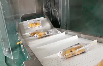 - Pengisian: Berdasarkan jumlah yang ditentukan, mesin pengemas secara otomatis mengisi makanan ke dalam kantong kemasan dengan akurat.