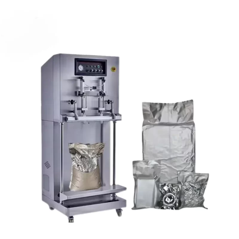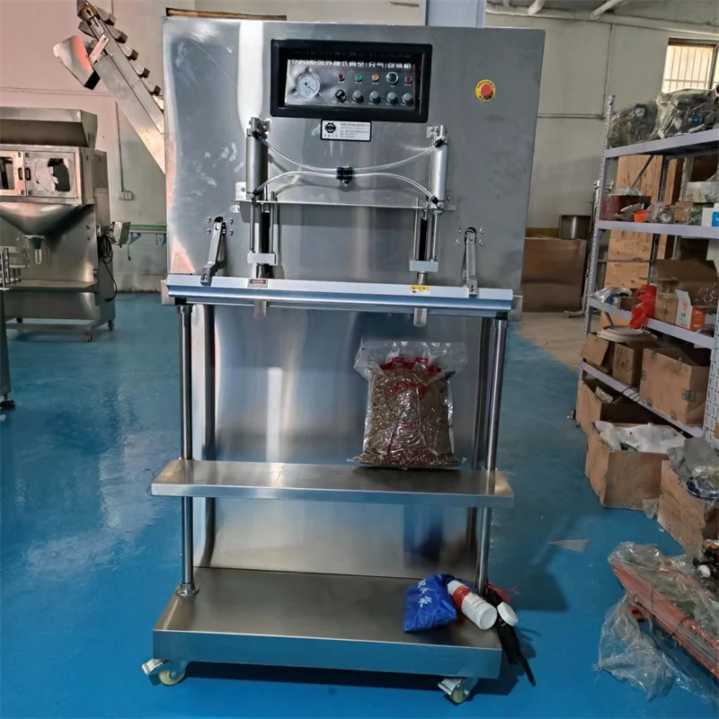 Ini adalah jenis mesin vacuum packing otomatis vertikal yang bekerja dengan pompa vakum berdaya tinggi untuk mengeluarkan udara dari dalam kantong, serta dapat mengisi udara atau langsung menyegel sesuai kebutuhan, cocok untuk kemasan primer.