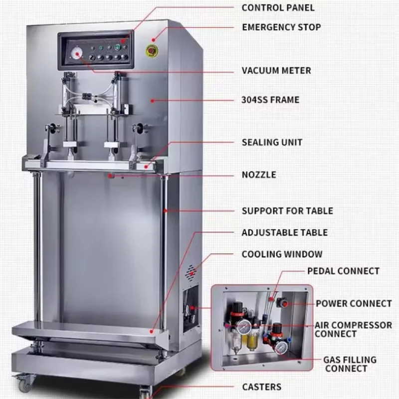 Mesin ini menggunakan mesin kemasan dengan pompa vakum industri 20L, daya kuat, pengeluaran udara lebih efisien, dan operasi lebih stabil.