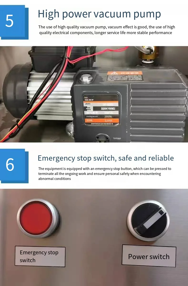 Menggunakan pompa vakum berkualitas tinggi, memiliki fungsi mesin vacuum sealer dengan hasil vakum luar biasa, dilengkapi komponen listrik berkualitas tinggi, masa pakai lebih lama, dan performa lebih stabil.