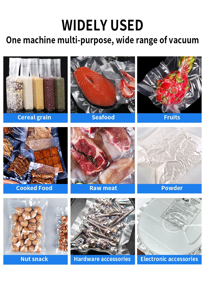 - Serbaguna – Satu mesin pembungkusan vakum dapat mengemas berbagai produk, seperti makanan, aksesoris logam, aksesoris elektronik, dan lainnya.