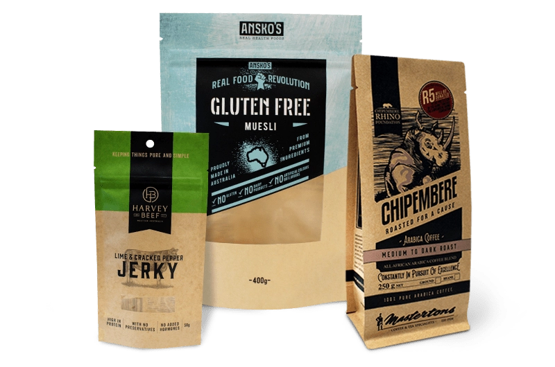 Produk Makanan: Dendeng sapi, biltong, daging kering, kacang-kacangan, buah kering, camilan kembung, permen, dan makanan hewan peliharaan.