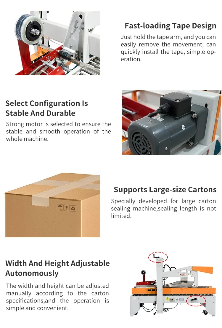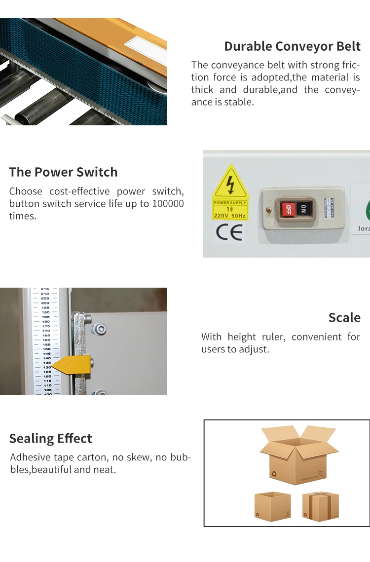 Mesin penyegel kotak karton ini banyak digunakan di industri yang membutuhkan pengemasan massal, terutama di industri makanan, produk kimia rumah tangga, dan sejenisnya. Mesin ini dapat meningkatkan efisiensi pengemasan secara efektif dan menjamin kualitas kemasan.
