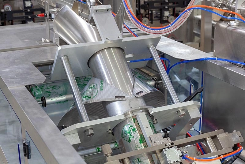 Hopper silinder dan blok pengumpanan pneumatik memastikan keteraturan dan keakuratan pengemasan;