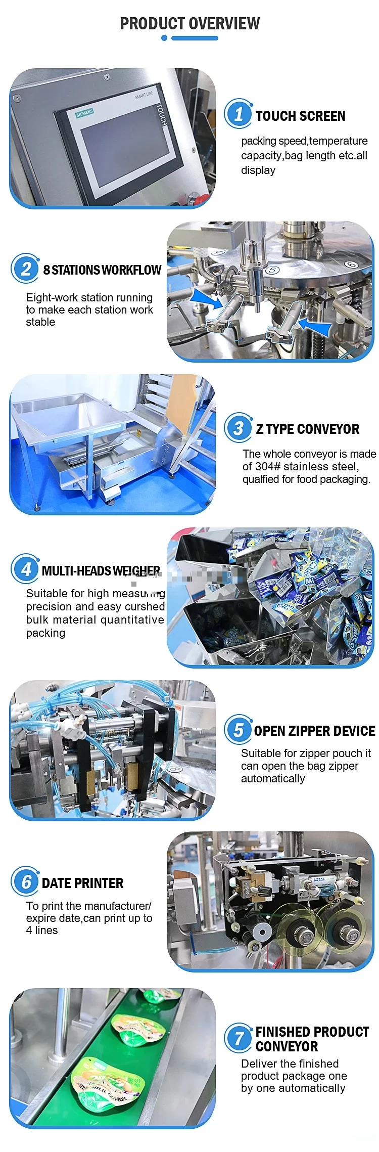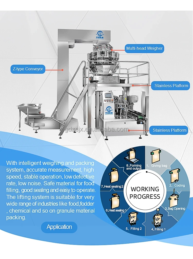 Mesin Pengemas Makanan Granul Kacang Otomatis Kantong Doy Penimbang Multihead Mesin Pengemas Tas Siap Pakai Mesin Pengemas Multifungsi Doypack, Pabrikan mesin packaging, penjualan langsung pabrik grosir