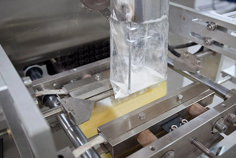 Ini adalah mesin filler otomatis untuk bubuk, menggunakan metode pengisian vertikal kontinu (VFFS), yang mengisi bahan bubuk dengan akurat ke dalam kantong kemasan melalui proses otomatis. Ini terutama digunakan untuk kemasan primer, yaitu mengemas produk langsung ke dalam wadah atau kantong akhir.