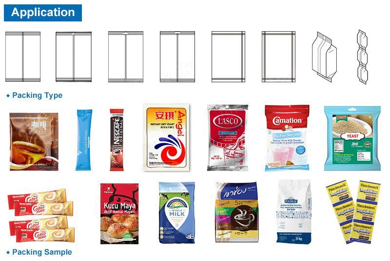 Mesin penyegel pengisian bentuk bubuk otomatis, Cocok untuk mengemas bahan bubuk halus. Seperti bubuk kopi, bubuk rempah, bubuk susu, tepung, bubuk buah, bumbu, bubuk medis kimia, dll. Mesin ini mengintegrasikan pengukuran, pengemasan, pengemasan, penyegelan, pencetakan tanggal.