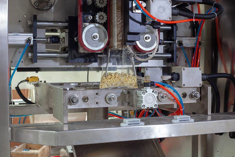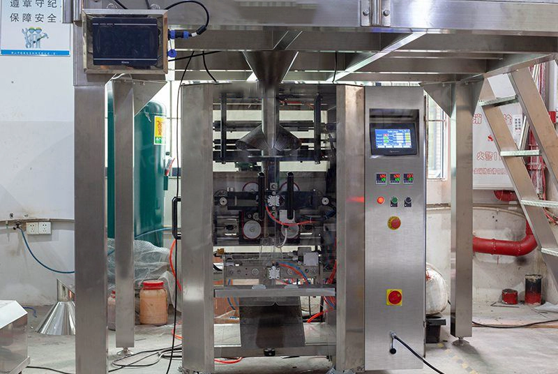 Mesin secara otomatis menyelesaikan proses pengisian, pengukuran, pembentukan kantong, pencetakan tanggal, penyegelan, dan pengemasan, merupakan mesin pengemas otomatis.