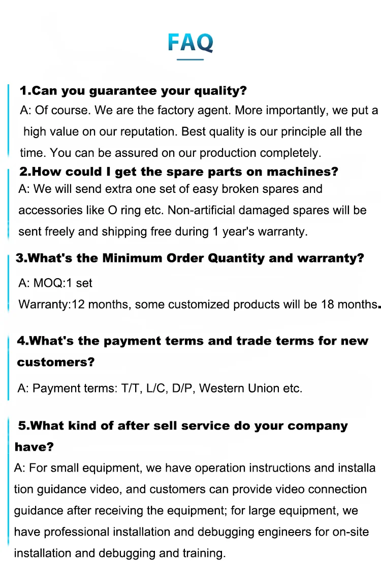 Memberikan layanan garansi 2 tahun untuk seluruh mesin untuk memastikan pengoperasian produk yang stabil.