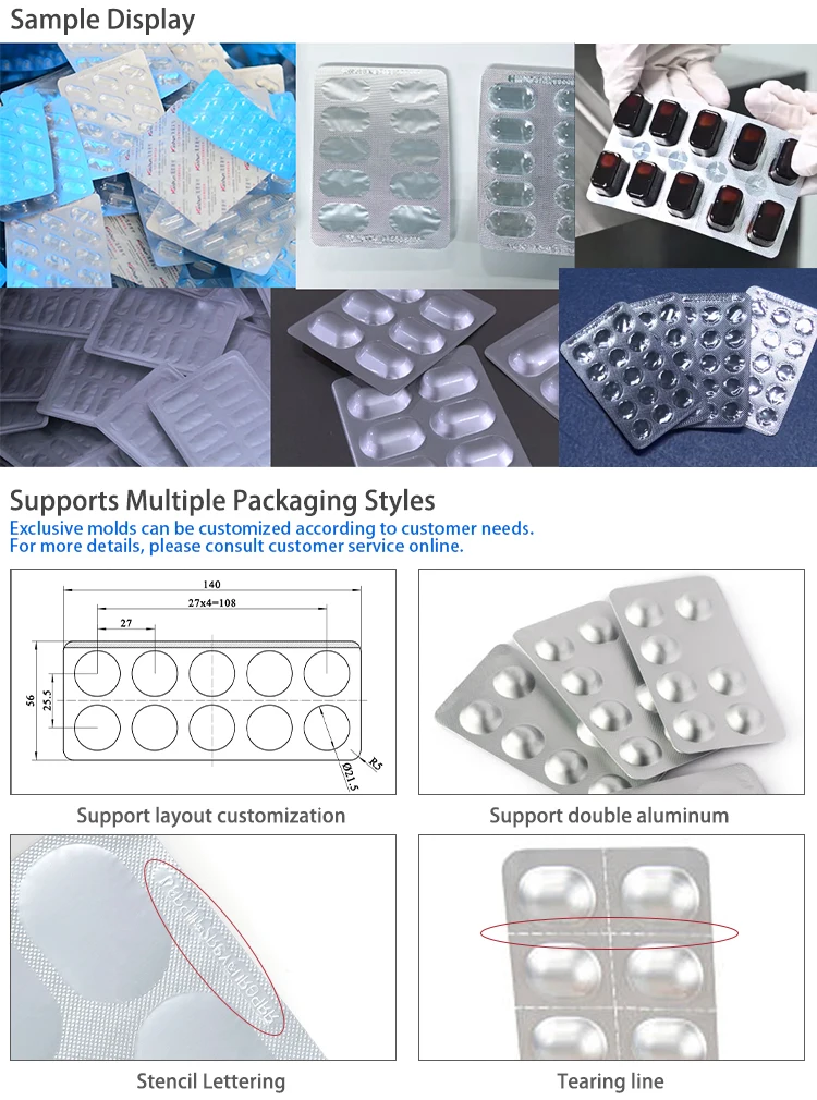 Ini adalah mesin pengemas blister alu-plastik otomatis, yang cocok untuk mengemas produk obat seperti tablet, kapsul lunak, dan produk kesehatan lainnya. Mesin ini memiliki fungsi sealer, yang bekerja dengan cara meletakkan produk di dalam lapisan aluminium-plastik, kemudian menggunakan teknologi penyegelan panas untuk menutup lapisan kemasan, memastikan integritas produk dan efek kesegarannya. Mesin kemasan ini termasuk dalam kemasan sekunder, digunakan untuk mengemas dan melindungi produk yang sudah dikemas, bukan untuk kemasan primer yang langsung bersentuhan dengan produk.