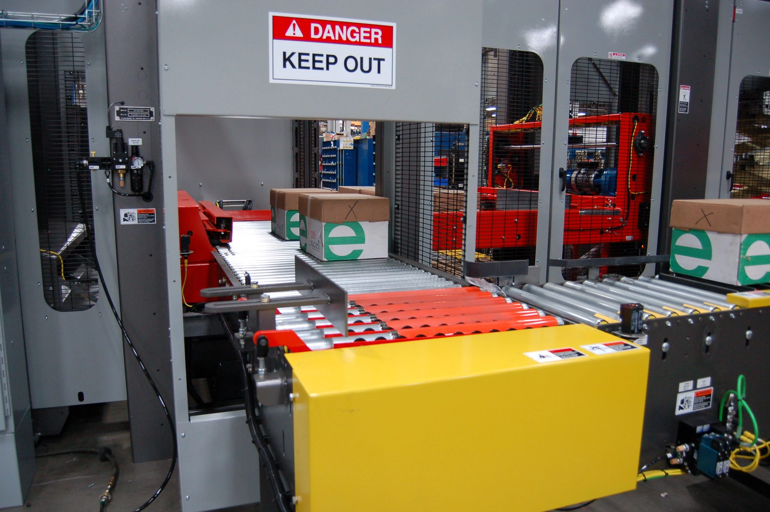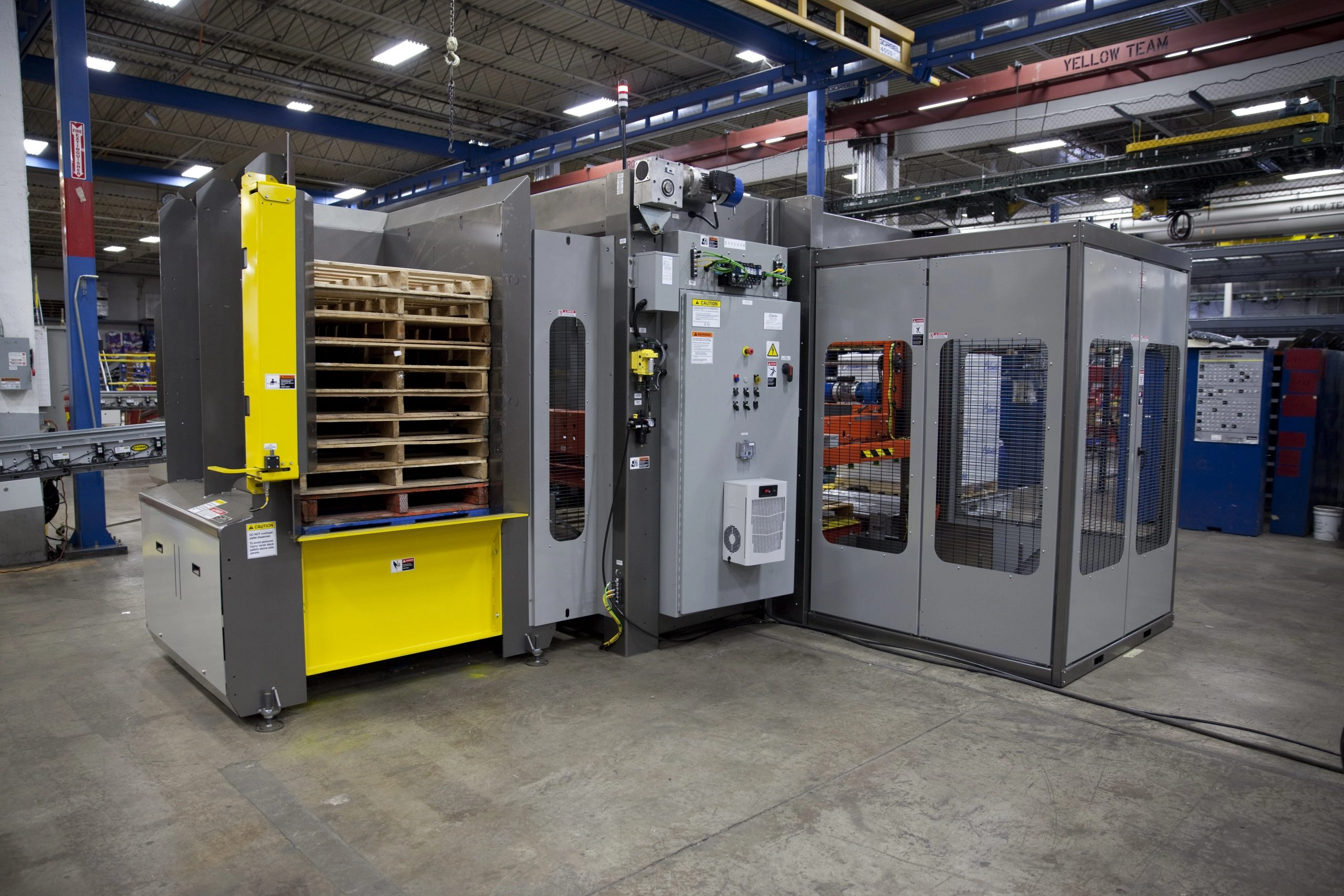 Palletizer adalah mesin yang digunakan untuk menyusun dan memindahkan barang ke atas palet secara otomatis.