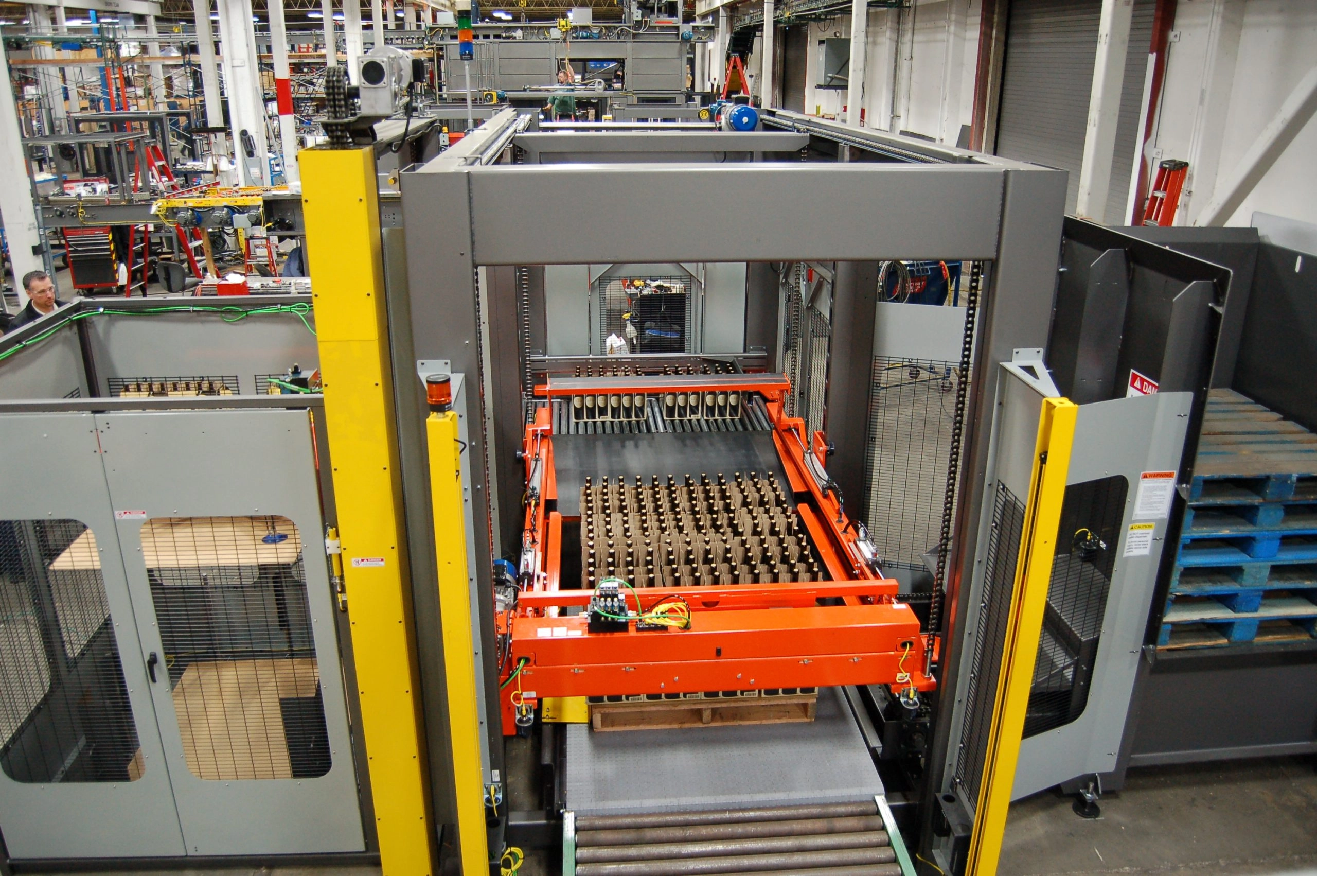 Palletizer adalah mesin yang digunakan untuk menyusun dan memindahkan barang ke atas palet secara otomatis.