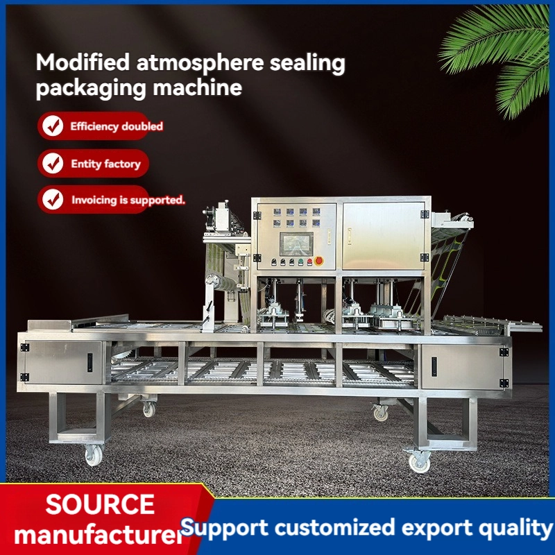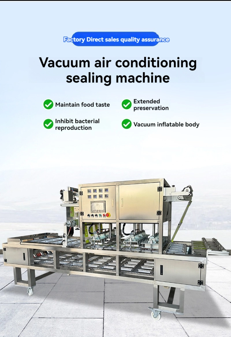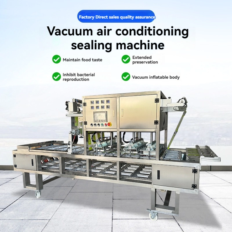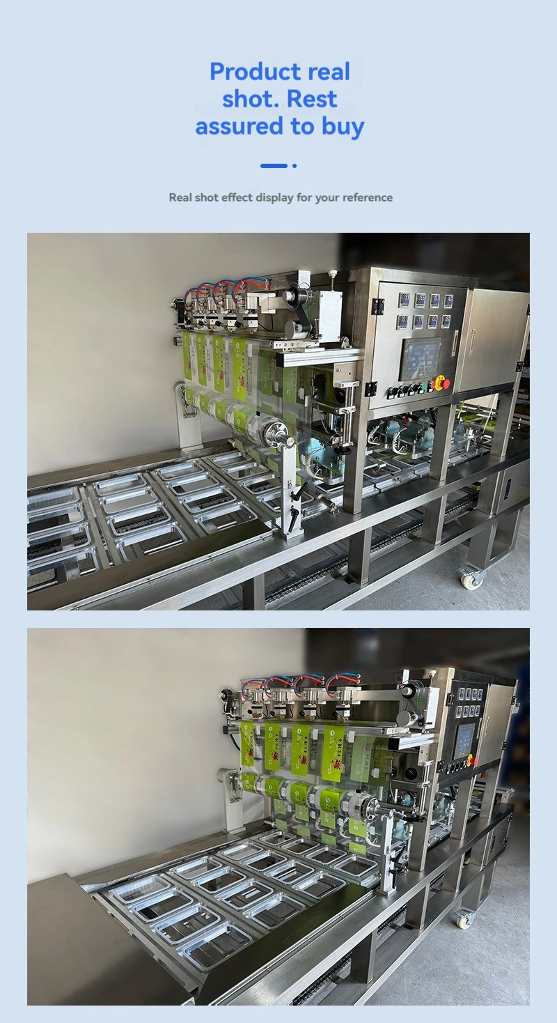 Mesin penyegel jalur perakitan otomatis penuh untuk makanan bebek yang dimasak, pengemasan yang diasinkan, kotak makan siang sekali pakai, pengemasan daging segar komersial, mesin vacuum sealer, Harga Grosir Pabrik Langsung