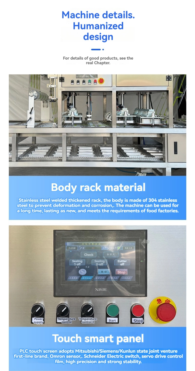 - Otomatisasi tinggi: Satu jalur produksi dapat secara terus-menerus menyelesaikan penyegelan dan pengemasan makanan dalam jumlah besar, cocok untuk produksi skala besar.