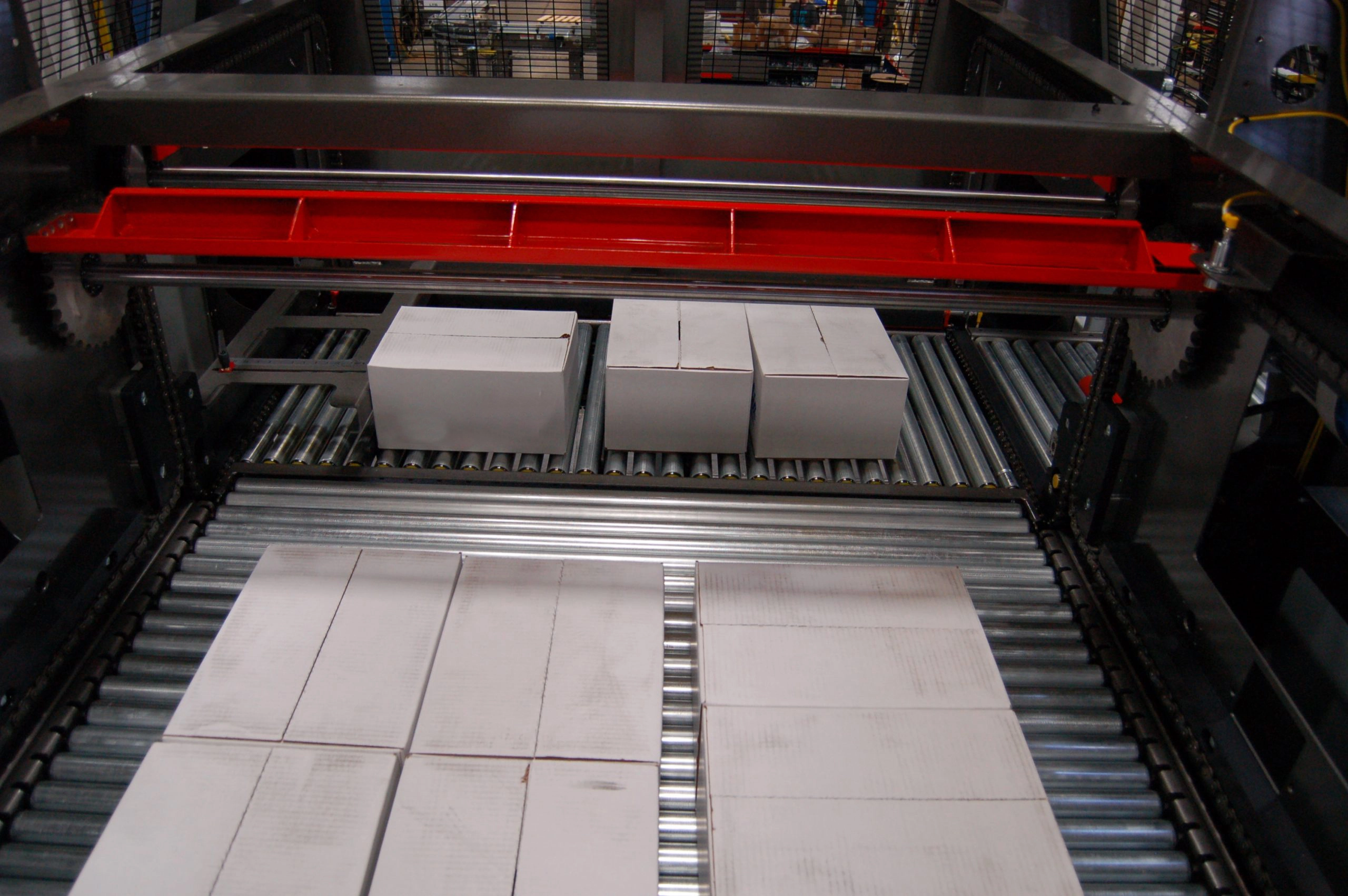 Palletizer adalah mesin yang digunakan untuk menyusun dan memindahkan barang ke atas palet secara otomatis.