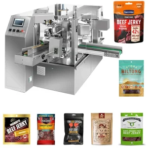 Mesin Pengemas Daging Dendeng dengan Penimbang Multihead, mesin kemasan snack