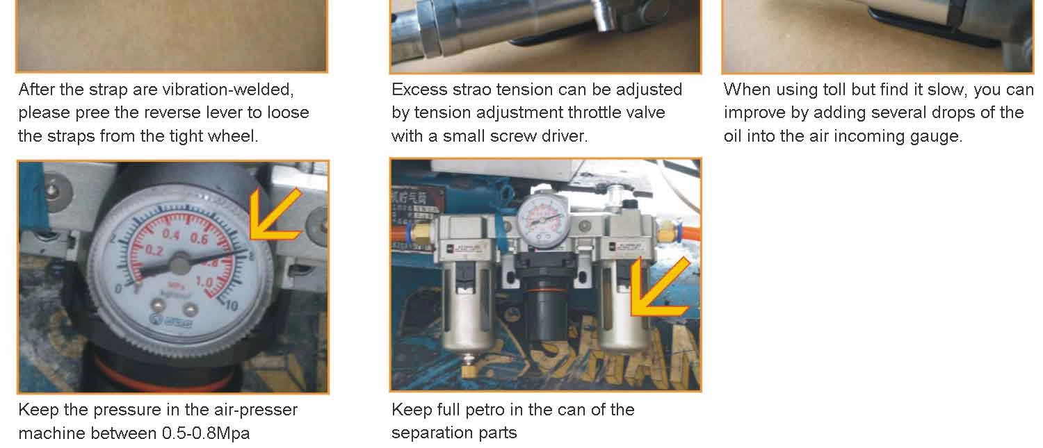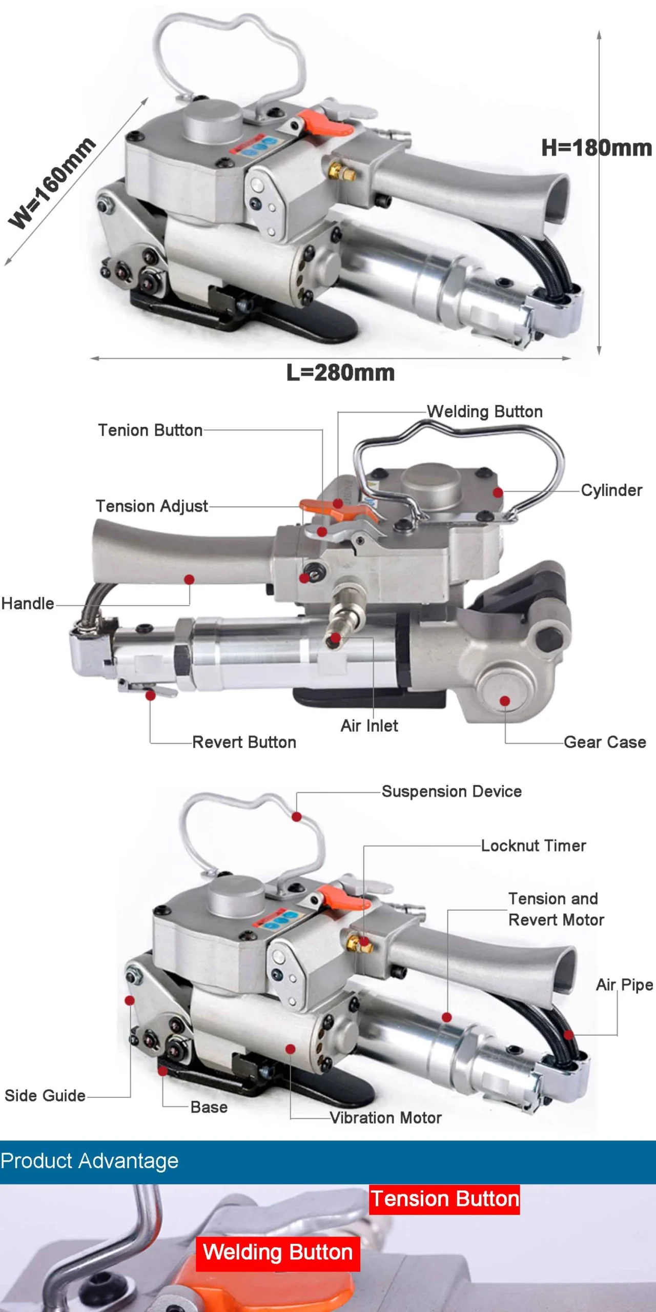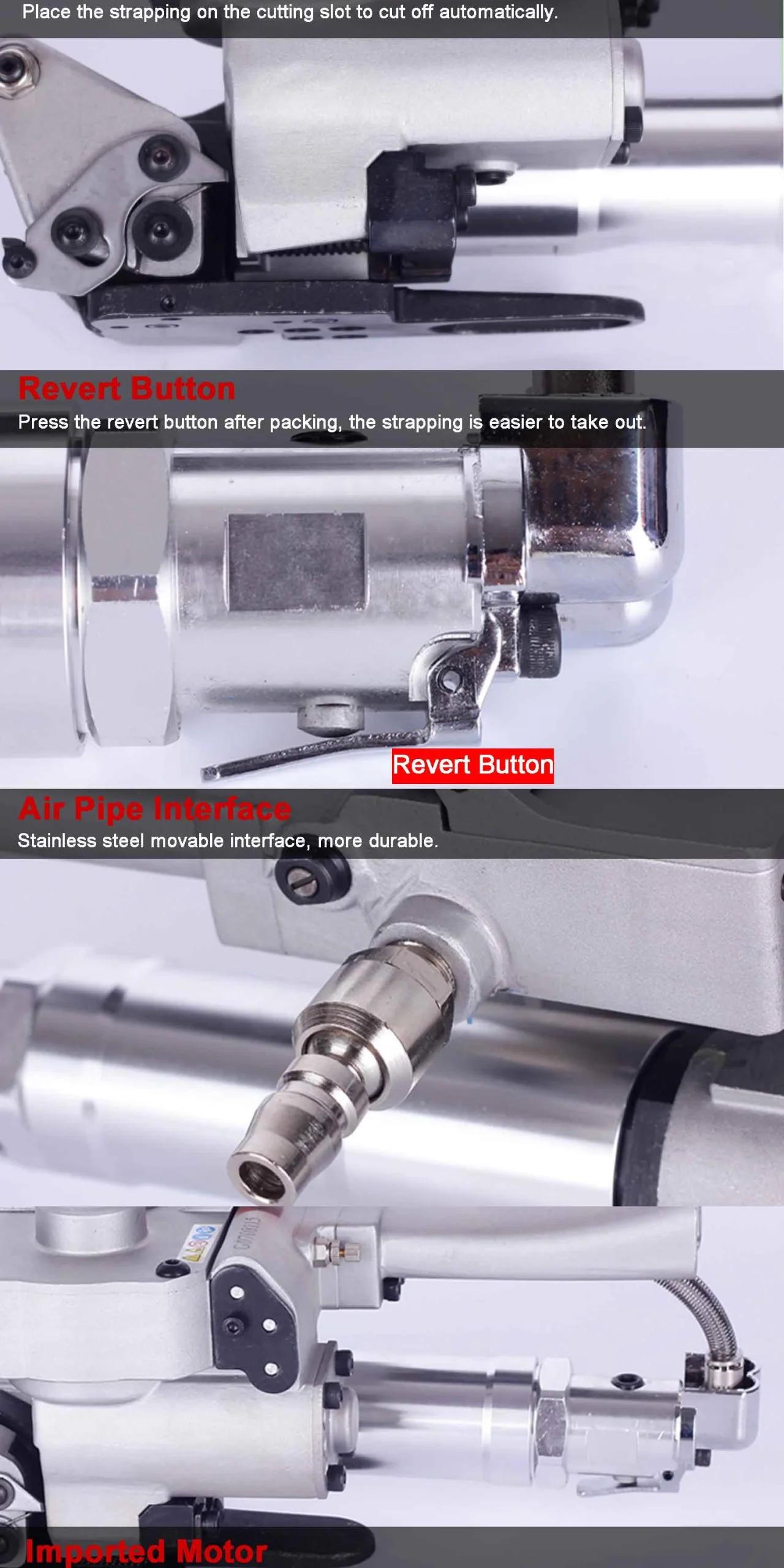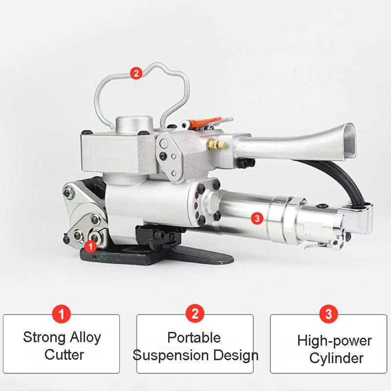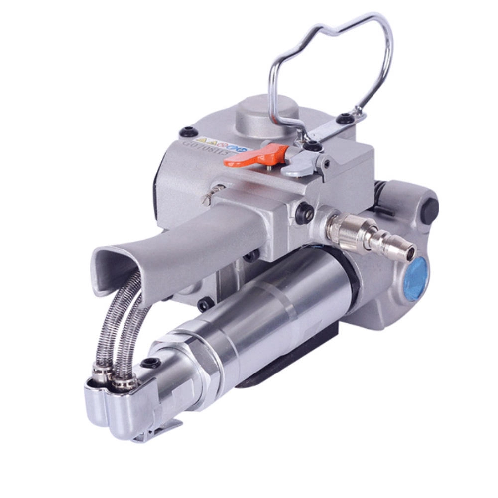 Alat Pengikat Pneumatik mampu menyelesaikan langkah pengencangan dan pengelasan dalam satu mesin. Alat ini digerakkan oleh udara, bukan operasi manual. Dibandingkan dengan alat pengikat manual, alat ini secara drastis meningkatkan efisiensi pengemasan. Sekarang alat ini banyak digunakan dalam industri seperti batu bata, kaca, kertas, aluminium batangan, tabung logam, dll.