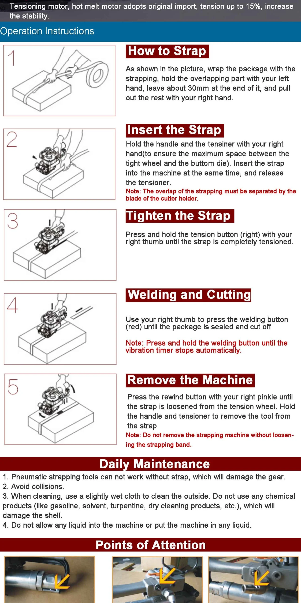 Mesin pengikat pneumatik digunakan untuk mengikat atau menyolder barang-barang. Berbeda dengan mesin strapping pada umumnya, mesin ini digerakkan secara pneumatik, menghindari operasi manual. Dibandingkan dengan alat pengikat manual, mesin pengikat pneumatik ini dapat meningkatkan efisiensi pengemasan secara signifikan. Mesin strapping ini banyak digunakan di berbagai industri, seperti peng ikatan dan penyolderan batu bata, kaca, kertas, batang aluminium, pipa logam, dan sebagainya.