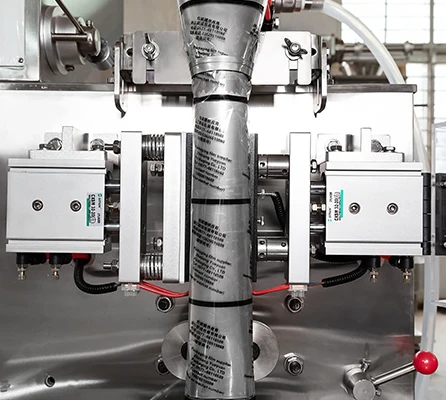 - Pengisian cairan – Mesin secara otomatis mengisi campuran cair es loli ke dalam film kemasan atau kantong yang telah dipersiapkan.