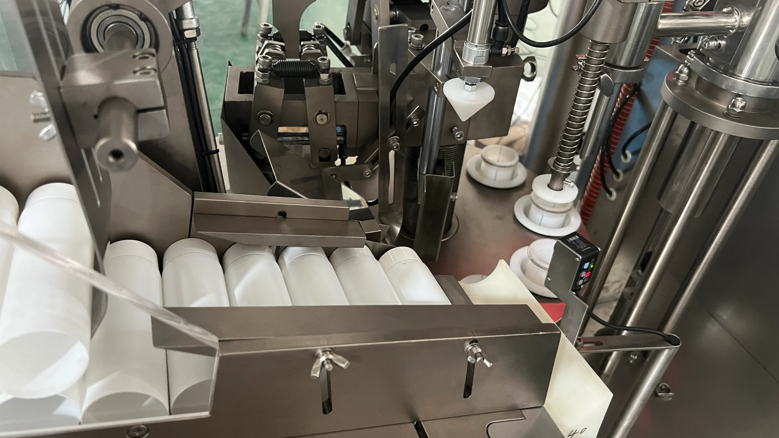 - e. Saat mengisi, nosel injeksi dapat memanjang ke dalam tabung, yang dapat memastikan injeksi yang efektif dan mencegah material menempel pada dinding tabung aluminium, meningkatkan keefektifan proses di mesin packing.