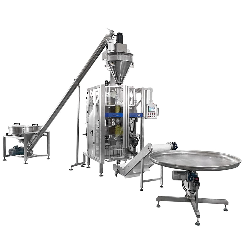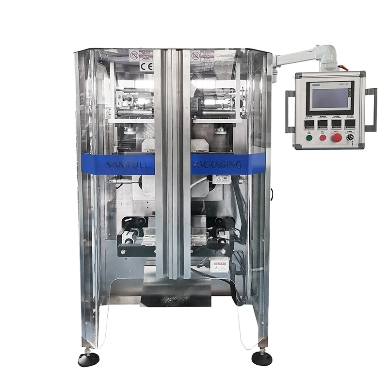 Ini adalah mesin VFFS (Vertical Form Fill Seal), sebuah mesin pengemas otomatis, yang dirancang khusus untuk mengemas produk berbentuk serbuk, dengan kapasitas pengemasan hingga 10 kg. Mesin ini bekerja melalui proses otomatis, pertama-tama membentuk kantong dari film kemasan, kemudian mengisi, menyegel, dan melakukan operasi lainnya untuk menyelesaikan proses pengemasan. Mesin ini dapat menyesuaikan bentuk dan ukuran kantong sesuai kebutuhan, dan digunakan untuk kemasan primer, biasanya untuk mengemas produk individu ke dalam kantong terpisah.